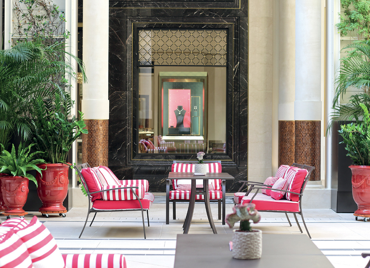 Un palace mythique ancré dans l’histoire monégasque et magnifié récemment par une somptueuse rénovation. Inattendu. Le nouveau Patio à ciel ouvert où l’on prend le temps de flâner ou de se poser. Façades recouvertes de marbre, sol orné de mosaïques… on savoure l’atmosphère paisible de cette cour arborée de 671m2 dont les arcades abritent de prestigieux joailliers.